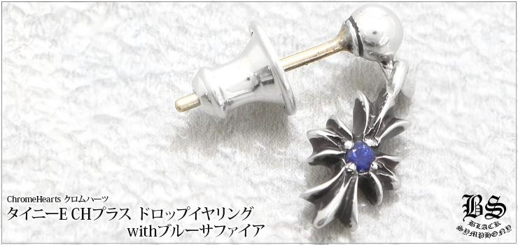 クロムハーツ タイニーE CHプラス ドロップイヤリングwithブルーサファイア(ピアス)