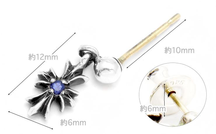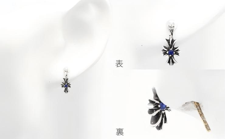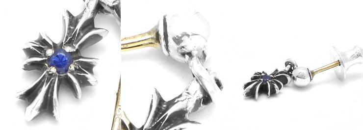 正面からみても、裏から見ても、1つずつ、合計2つのブルーサファイアが配置されているので、よりファッションにこだわりが深い方にこそおすすめのクロムハーツピアスです。