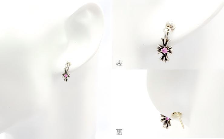小ぶりなドロップタイプで人気のCHプラスモチーフのピアスにピンクサファイアをプラスしたクロムハーツピアス。