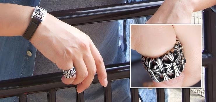 クロムハーツの中の大人気モチーフ、CHクロスのモチーフが上下交互に連なった贅沢かつ存在感の強いフォルムが印象的な、「セメタリーリング」です。