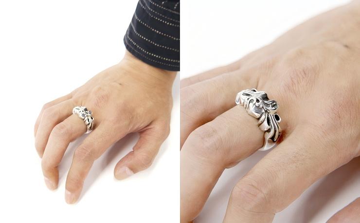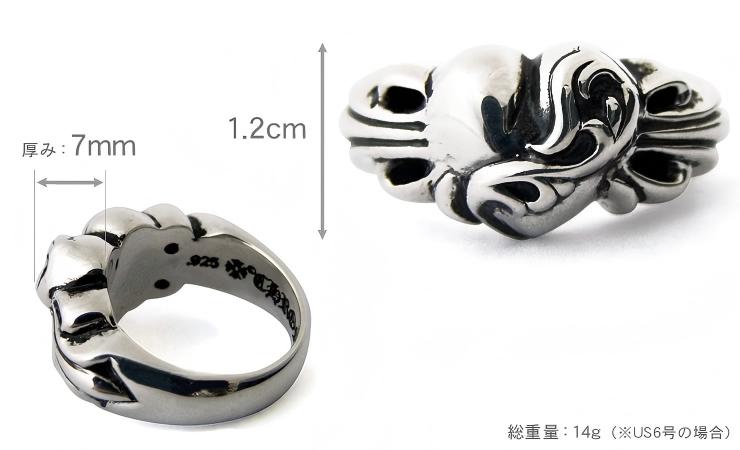 クロムハーツのシルバーアクセサリーのイメージといえば、重厚かつハードなデザイン。 この「フローラルクロスハートリング」は重厚でありながらも、繊細なデザインが印象的なクロムハーツリング。ハートという柔らかい印象を与えるモチーフに、フローラルクロスを融合させ、デザイン性の高い美しいリングに仕上げられている。そのモチーフから男性だけではなく、女性からも人気が高く、プレゼントとしても、ペアリングとしても喜ばれています。クロムハーツならではのデザインをしっかりと愉しみながらも、繊細なデザイン性の高さも感じることができるリングです。