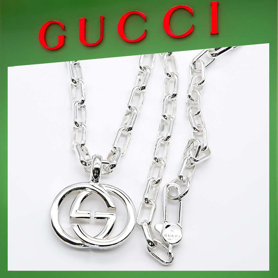 【国内発送/直営店】ネックレス グッチ メンズ インターロッキングG ペンダント シルバー