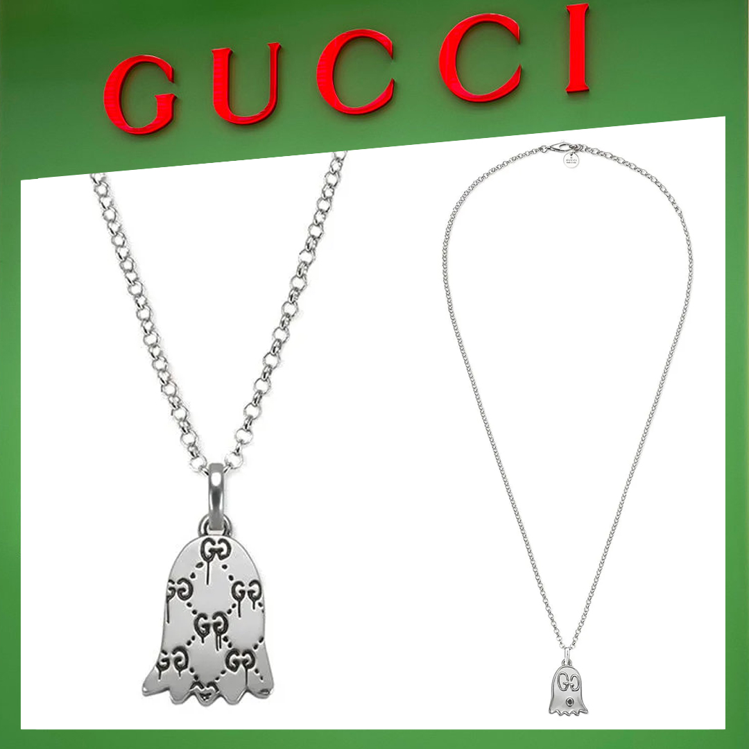 【国内発送/直営店】ネックレス レディース グッチゴースト ハート ペンダント シルバー