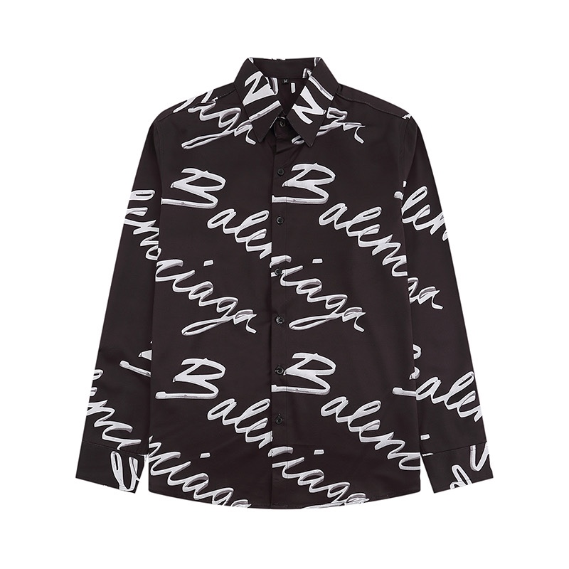 Balenciaga ダブルBグラフィティプリント長袖シャツ男女同ブラック・ホワイトS-XL