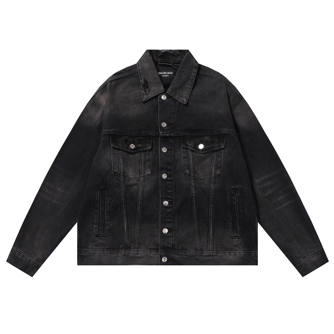 Balenciaga 23年新刺繍ラミネート文字カデニムジャケット ユニセックス