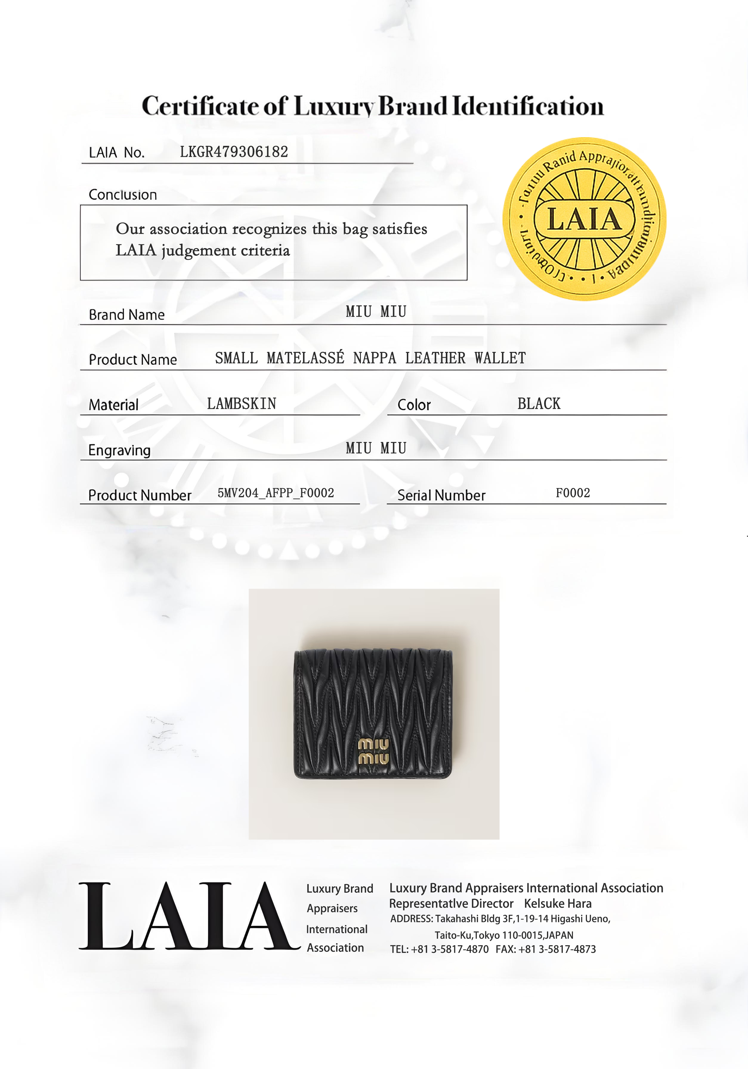 コンパクトなシルエットに、卓越したクラフトマンシップが宿る[マテラッセ]の洗練された極上の質感と立体感が際立つ、スモールサイズのナッパレザー(羊革)の2つ折り財布。磨き抜かれた職人技の中に、様々なメタルで仕上げられたパーツと同色の魅力的なメタルのMIU MIU ロゴが、一目でミュウミュウとわかるアイコニックな存在感と輝きを放ちます。$内側に多数のカードホルダーと収納部分を備えた、収納力のある整理しやすいデザイン。