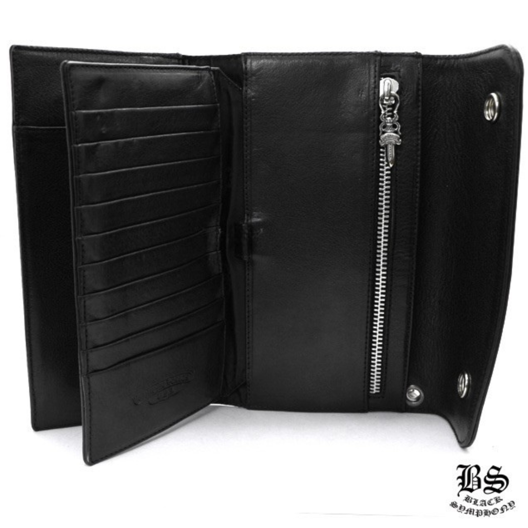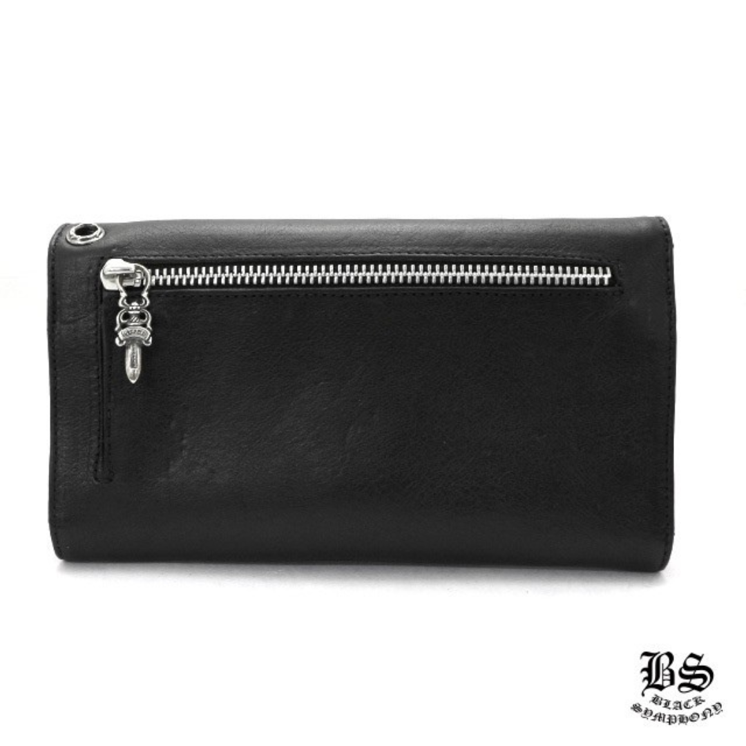 クロムハーツ ウェーブウォレット クロスボタン ブラック ヘビーレザー