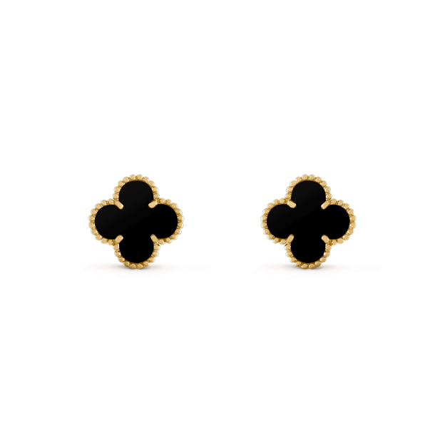 Van Cleef&ArpelsのVintageAlhambra®コレクションは、1968年の最初のアルハンブラジュエリーを忠実に再現し、一目で人々を魅了するユニークで時代を超越したエレガントなデザインを採用しています。 四つ葉の幸運のモチーフに触発されたこれらの幸運のシンボルは、イエローゴールドのビーズでトリミングされています。
