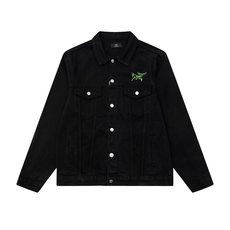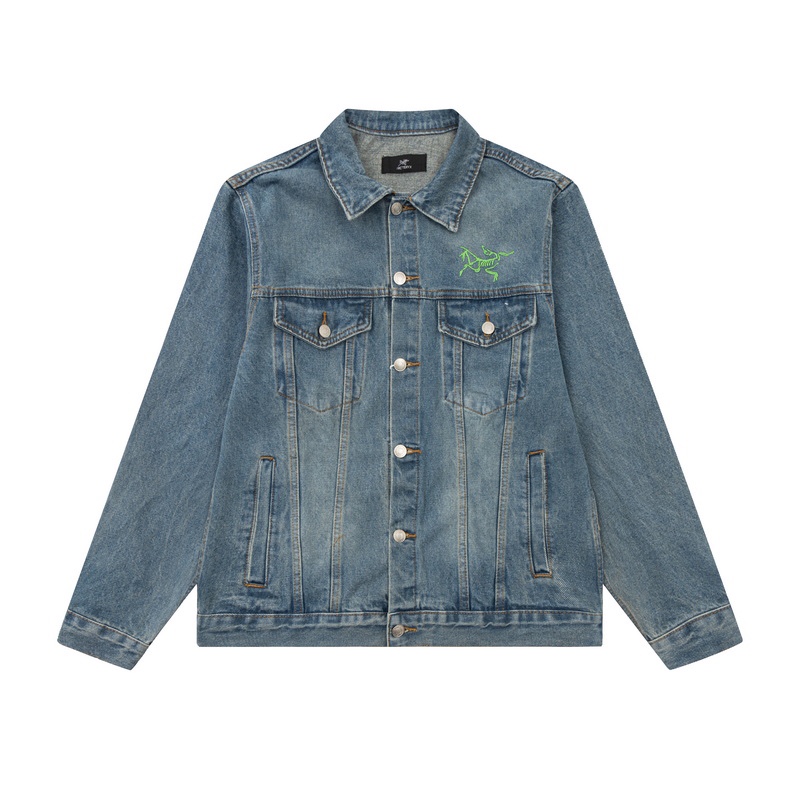 蛍光網レッドトカゲプリントのアルファベットLOGOが特徴的な、Arctertxのデニムジャケットが新登場!カップルモデルなので、お揃いでお楽しみいただけます。Mサイズから2XLまでのサイズ展開なので、男性も女性もサイズに合わせてお選びいただけます。